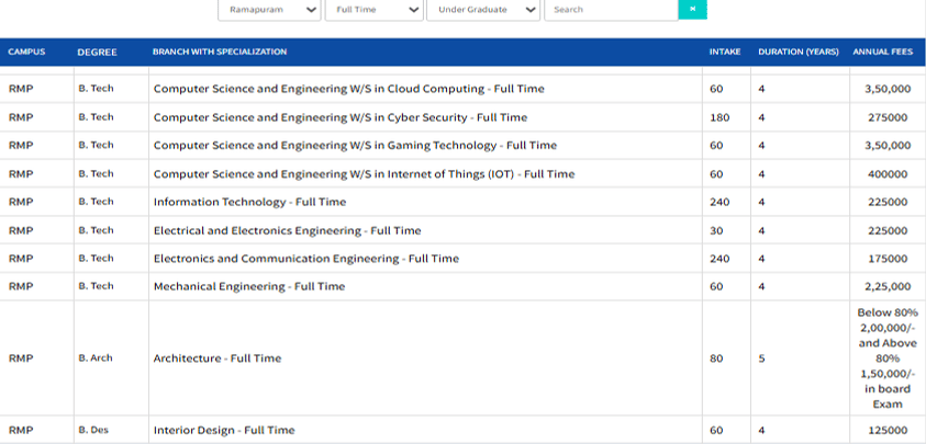 | SRM University Ramapuram | ₹ 12.7 Lakhs |