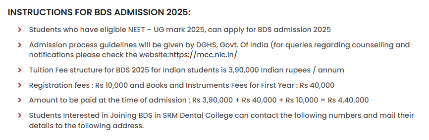 Students have an option to pursue BDS from similar colleges such as SRM University Chennai, SRM University Ramapuram. Similar to SRM University Ramapuram, BDS at these group colleges is offered Full Time for a duration of 5 Years.
