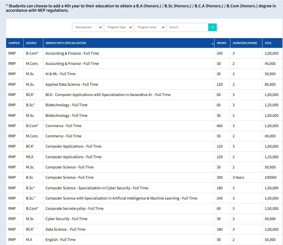 Earlier, B.Sc Computer Science fees at SRM University Ramapuram was ₹ 2.1 Lakhs (in 2024) for the entire course duration. This shows that the fee has remained unchanged since 2024.