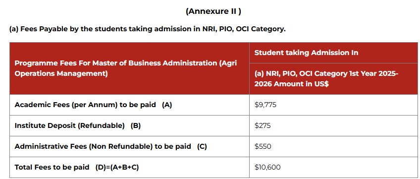 | College | MBA Agri Operations Management Total Fees |