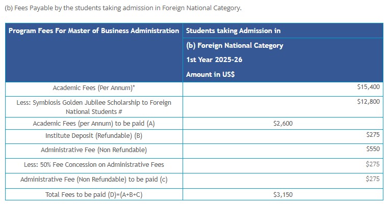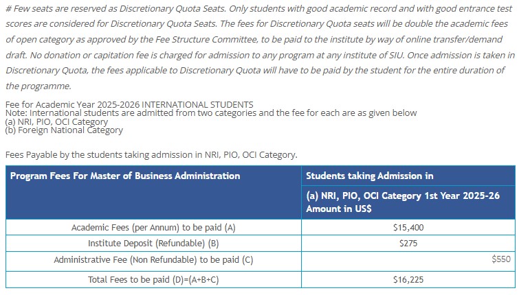 Earlier, MBA Finance fees at Symbiosis International University Hyderabad was ₹ 15.5 Lakhs (in 2024) for the entire course duration. This shows that the fee has remained unchanged since 2024.