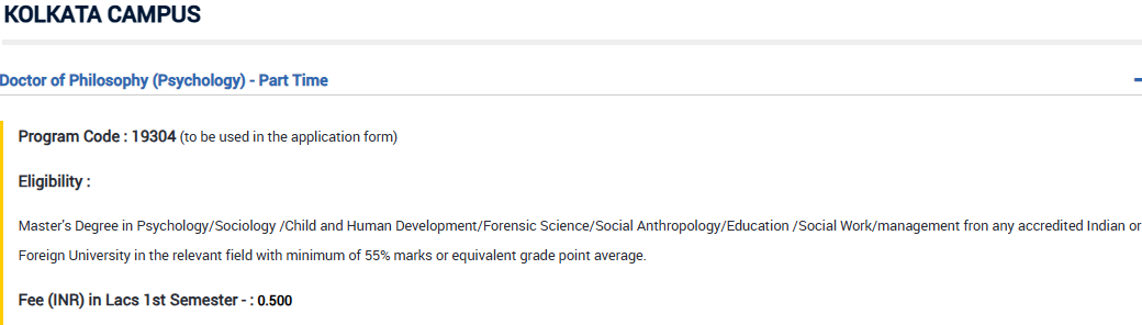 Earlier, Ph.D Management fees at Amity University Kolkata was ₹ 3.09 Lakhs (in 2024) for the entire course duration. This shows a fee increase of ₹ 33,000 over the year.