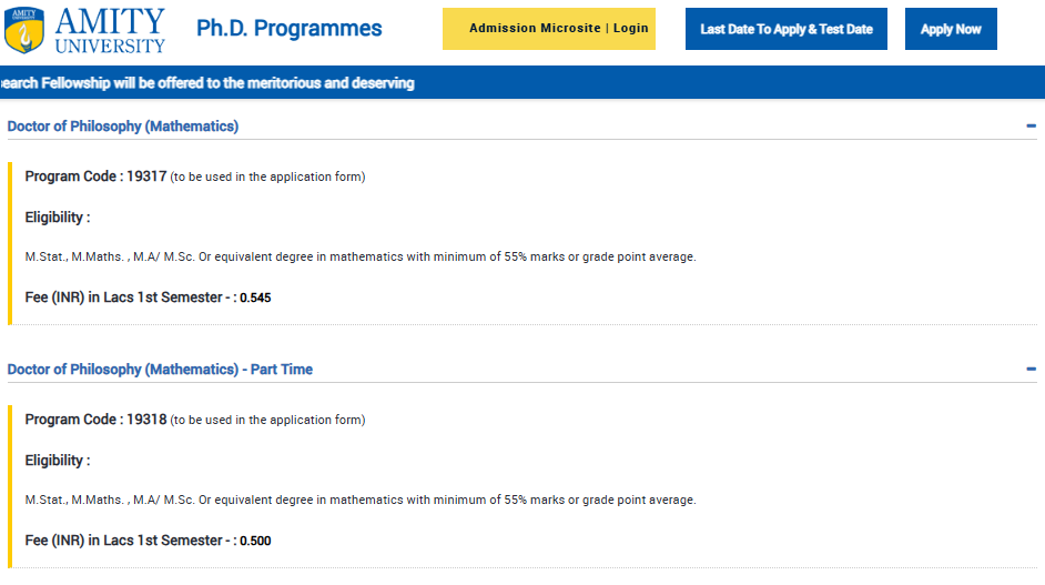 Earlier, Ph.D Mathematics fees at Amity University Kolkata was ₹ 1.44 Lakhs (in 2024) for the entire course duration. This shows a fee increase of ₹ 1.56 Lakhs over the year.