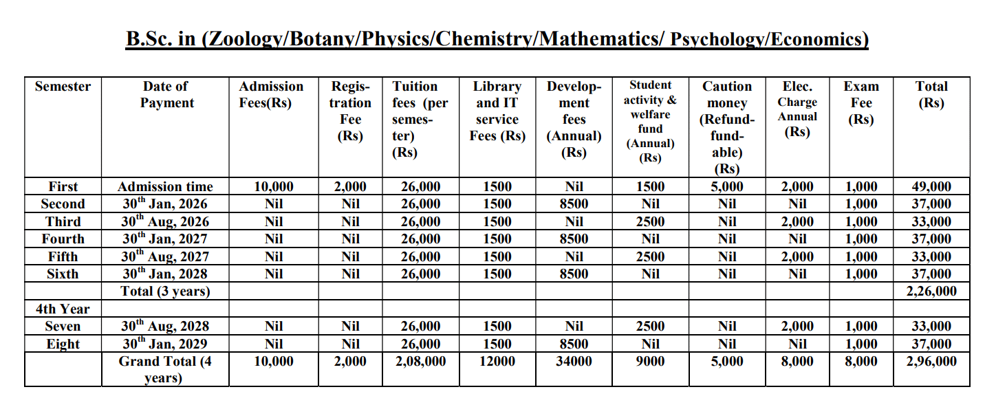 | Semester Wise Fees | 58000 | 46000 | 42000 | 46000 | 42000 | 46000 |