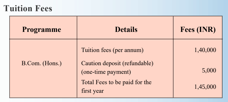 - This includes a total tuition fee of ₹ 5.6 Lakhs, Caution Fees of ₹ 2,000.