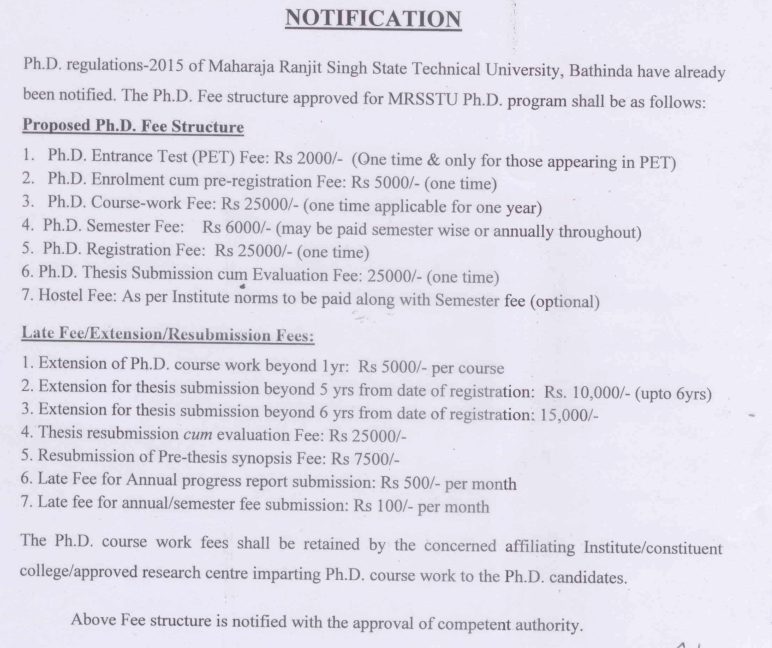 MRSPTU Ph.D Electronics And Communications Engineering Fees