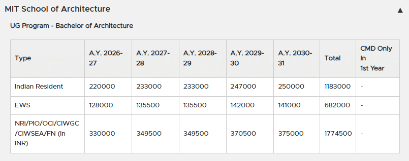 The architecture course at MIT College is led by highly educated and skilled faculty and staff who provide thorough knowledge and support to help students grasp fundamental concepts effectively. The program costs approximately Rs. 1,70,000 per semester, excluding expenses for site visits and trips, which occur twice each semester. The total cost for the entire architecture program amounts to around Rs. 12 lakhs, not including hostel fees.