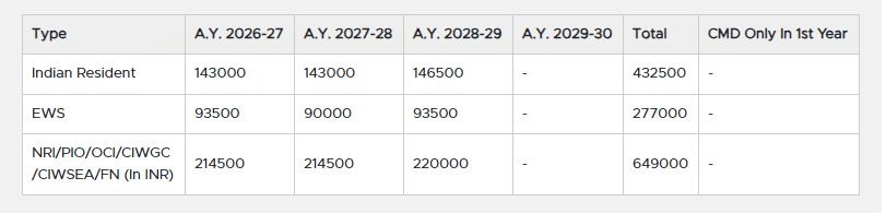- Candidates need to pay ₹ 2.51 Lakhs in the first year.