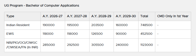 Earlier, BCA fees at MITADT was ₹ 5.74 Lakhs (in 2025) for the entire course duration. This shows a fee increase of ₹ 6.05 Lakhs over the year.