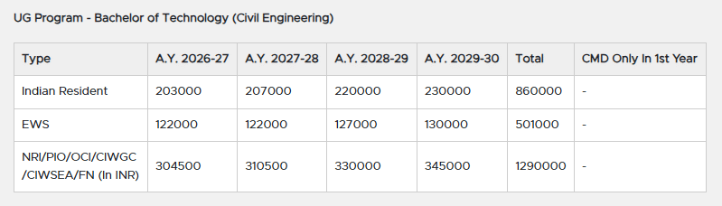 - Candidates need to pay ₹ 3.11 Lakhs in the first year.