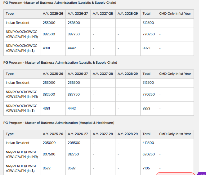 | Fees (2025 - 2026) | Year 1 (in INR) | Year 2 (in INR) |