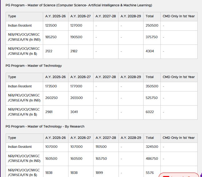 | Fees (2025 - 2026) | Year 1 (in INR) | Year 2 (in INR) |