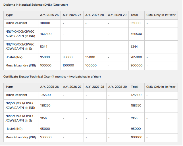 MITADT Certification Electro Technical Officer is offered as 4 Months Full Time program, with total intake of 50 seats. The minimum eligibility criteria for Certification is 10+2 with 50%. The total fees for MITADT Certification Electro Technical Officer in 2025 is ₹ 1.26 Lakhs for the complete course duration.