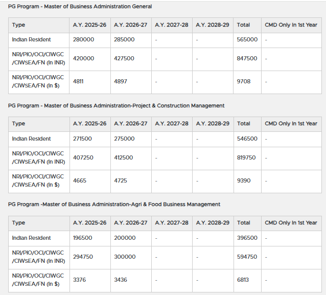 | Fee Type | Total Amount (INR) |