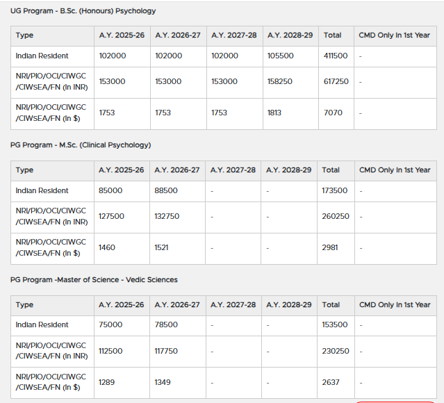 | Fees (2025 - 2026) | Year 1 (in INR) | Year 2 (in INR) |