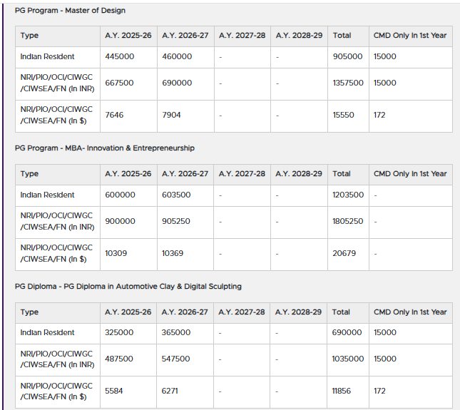 | Fees (2025 - 2026) | Year 1 (in INR) | Year 2 (in INR) |