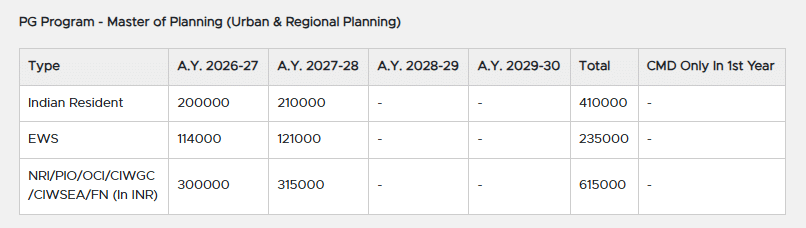 Earlier, M.Plan Urban Planning fees at MITADT was ₹ 3.8 Lakhs (in 2025) for the entire course duration. This shows a fee increase of ₹ 2.45 Lakhs over the year.