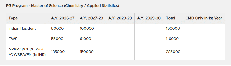 - Candidates need to pay ₹ 1.98 Lakhs in the first year.