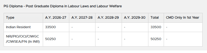 For students applying under the NRI quota for admission, the total course fee for PG Diploma Labour Laws at MITADT is ₹ 1.58 Lakhs.