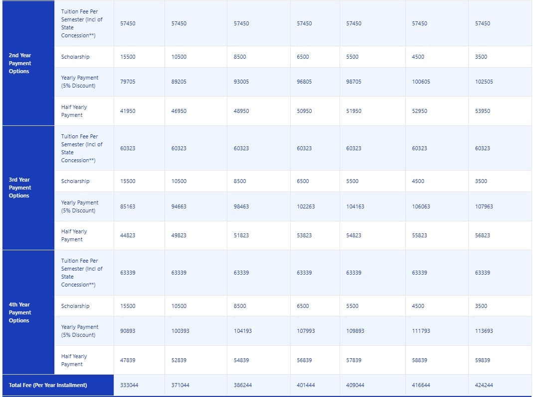 - Candidates need to pay ₹ 2.3 Lakhs in the first year.