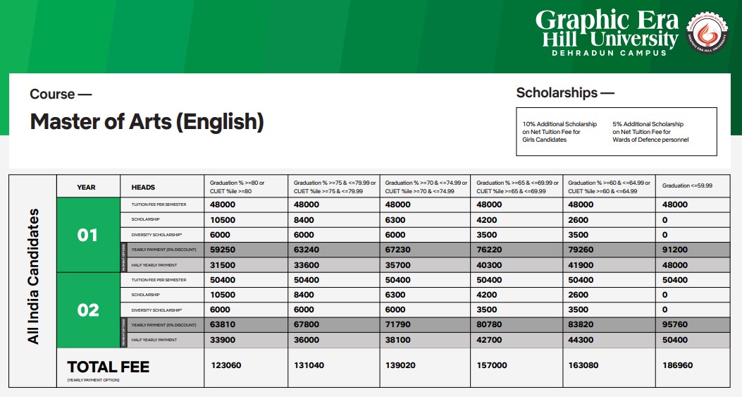 MA English Fees at GEHU Dehradun covers a range of expenses, including tuition fee, course materials, and access to campus facilities.