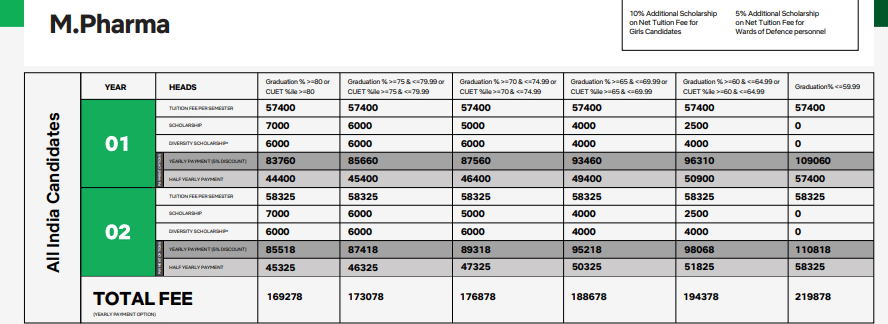 - The total fees for M.Pharm Pharmaceutics is ₹ 2.86 Lakhs.