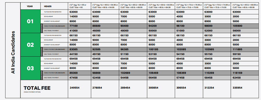- Candidates need to pay ₹ 1.59 Lakhs in the first year.