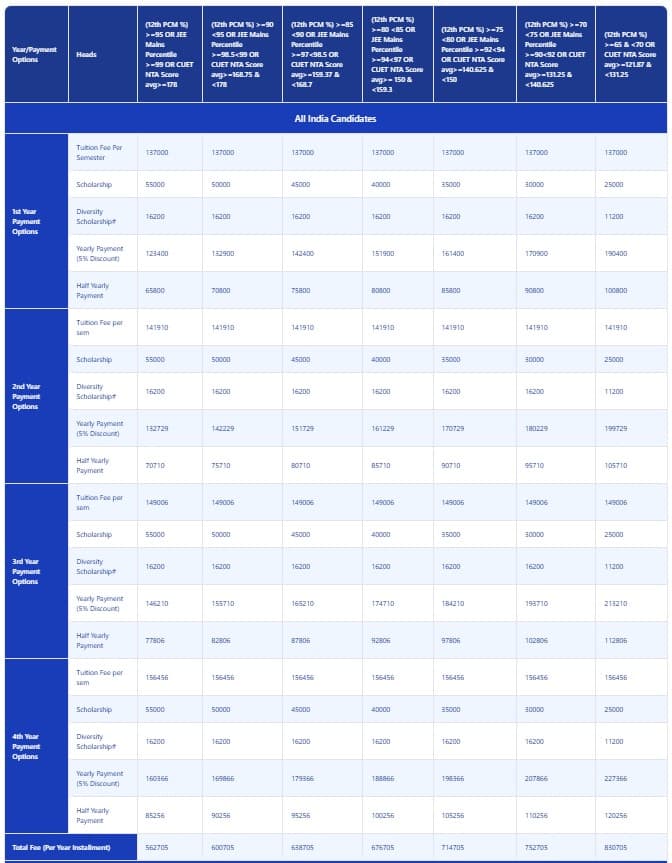 | Fee Type | Total Amount (INR) |