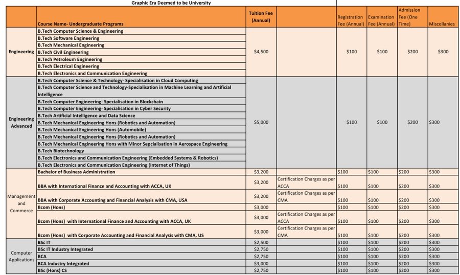 Earlier, B.Tech {Hons.} Artificial Intelligence & Machine Learning fees at GEHU Bhimtal was ₹ 8.62 Lakhs (in 2021) for the entire course duration. This shows a fee increase of ₹ 2.62 Lakhs over the year.