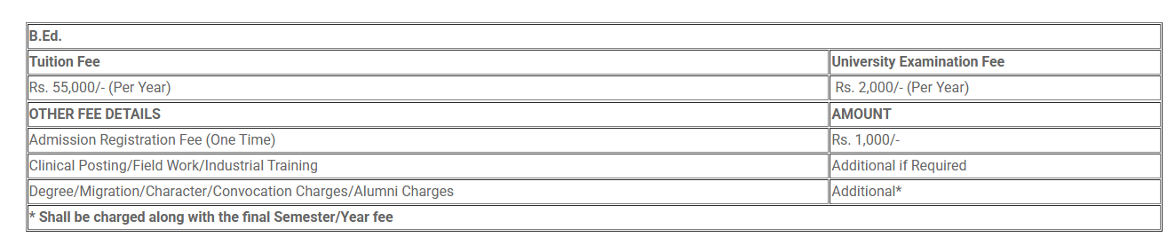 Glocal University Saharanpur B.Ed fees in first year is ₹ 58,000. The detailed fees is mentioned below.