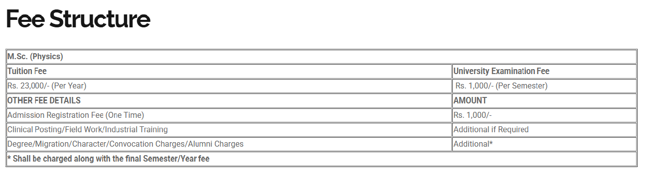 Glocal University Saharanpur M.Sc Physics fees in first year is ₹ 26,000. The detailed fees is mentioned below.Check Glocal University Saharanpur Admission 2025