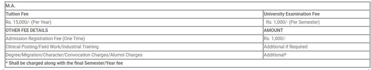 Glocal University Saharanpur MA fees in first year is ₹ 18,000. The detailed fees is mentioned below.