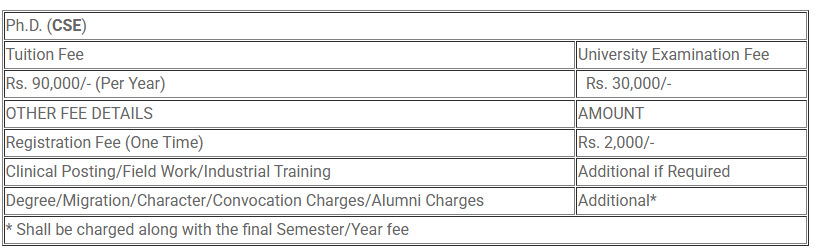 Glocal University Saharanpur Ph.D Computer Science And Engineering fees in first year is ₹ 1.21 Lakhs. The detailed fees is mentioned below.Check Glocal University Saharanpur Admission 2025