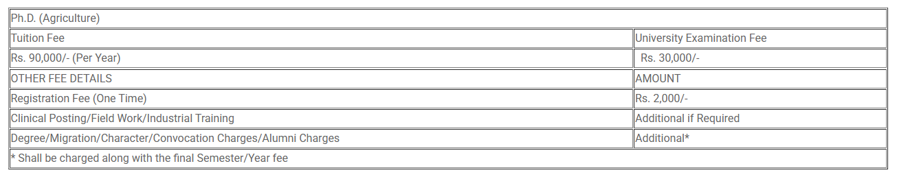 Glocal University Saharanpur Ph.D Agriculture fees in first year is ₹ 1.21 Lakhs. The detailed fees is mentioned below.Check Glocal University Saharanpur Admission 2025
