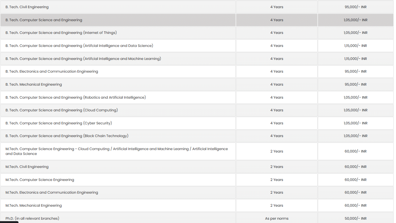 - The total fees for B.Tech Computer Science and Engineering - Internet of Things is ₹ 8.4 Lakhs.
