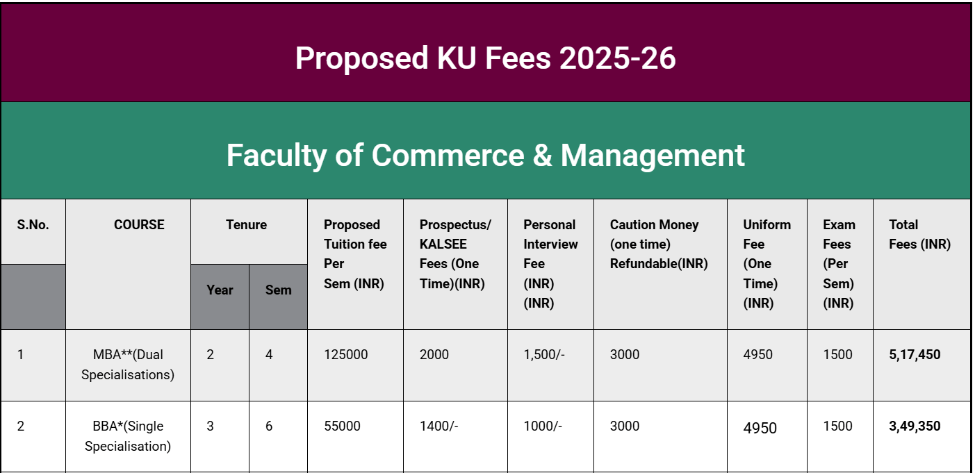 02 Sep, 2025 Kalinga University Raipur BBA Human Resource Management Fee Structure 2025-2026 has been released. The total academic fee is ₹ 3.55 Lakhs.