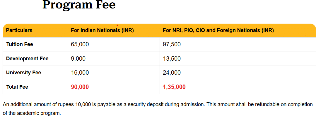 | Fees (2025 - 2026) | Year 1 (in INR) | Year 2 (in INR) | Year 3 (in INR) |