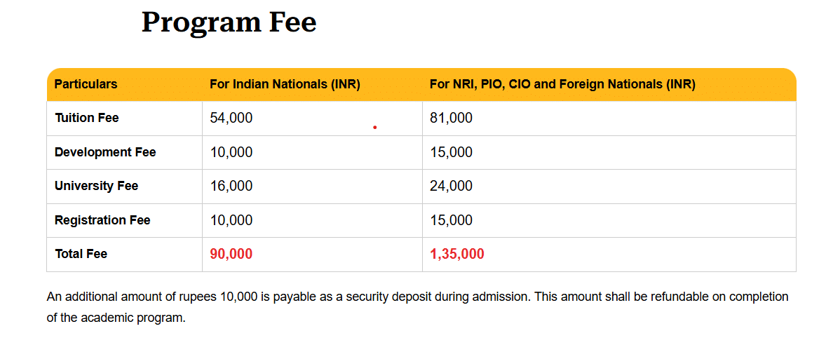 | Fees (2025 - 2026) | Year 1 (in INR) |