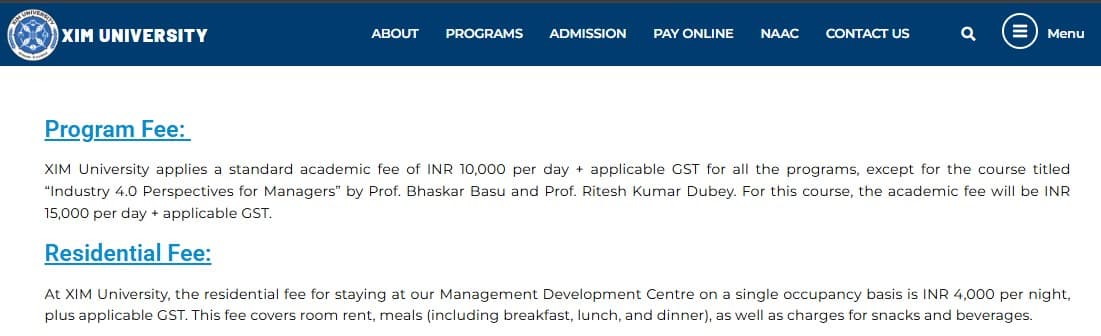 XIM University MDP fees 2025 is ₹ 10,000 for the entire course duration.