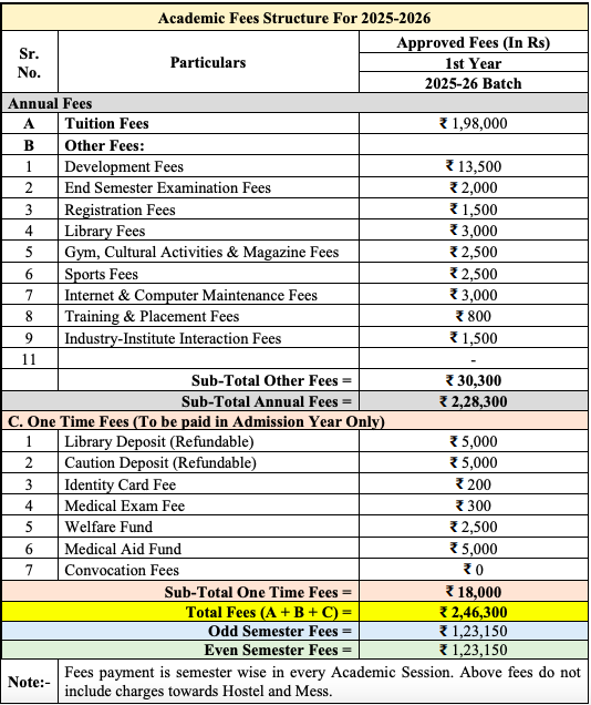 - Candidates need to pay ₹ 2.46 Lakhs in the first year.