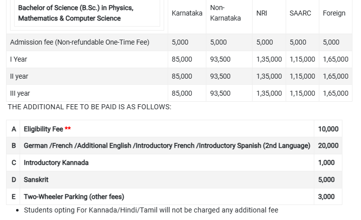 The college, located in Bangalore, is renowned for its academic, sports, and social support, with a strong faculty holding PhDs in most departments. Admissions commence in April, requiring candidates with over 80% marks to attend a merit-based interview. Fees are affordable due to government funding, ranging from Rs 29,000 to Rs 40,000 annually, including tuition and additional charges for facilities. Discounts on fees and scholarships are available based on performance and need.