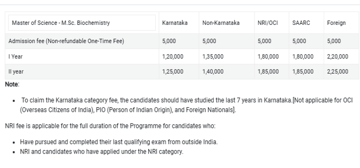 - The total fees for M.Sc Biochemistry is ₹ 2.8 Lakhs.