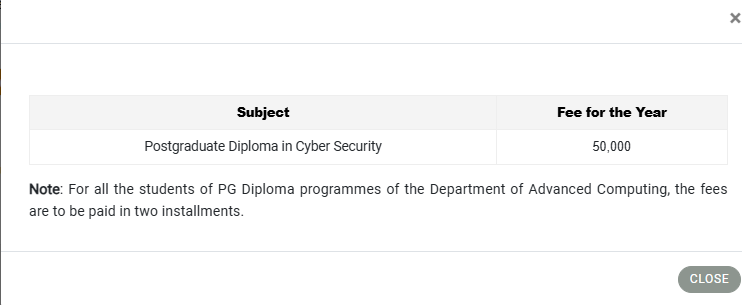 - The total fees for PG Diploma Cyber Security is ₹ 50,000.