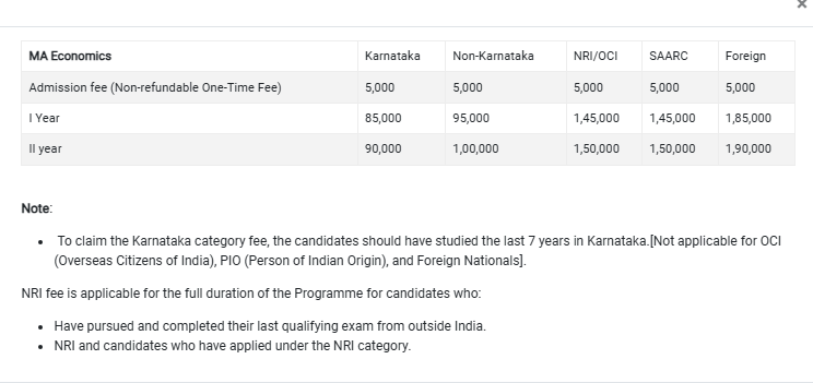 For students applying under the NRI quota for admission, the total course fee for MA Economics at SJU Bangalore is ₹ 3 Lakhs.