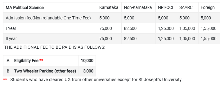 MA Political Science at SJC Bangalore is a 2 Years Degree. The course is offered On Campus as a Full Time program. SJC Bangalore MA Political Science First Year Fees is INR 82,000 for 2025.
