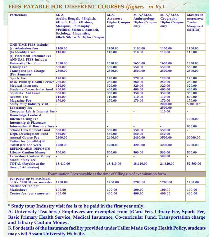 Earlier, M.Sc Anthropology fees at Assam University Diphu was ₹ 31,765 (in 2018) for the entire course duration. This shows a fee decrease of ₹ 1,105 over the year.