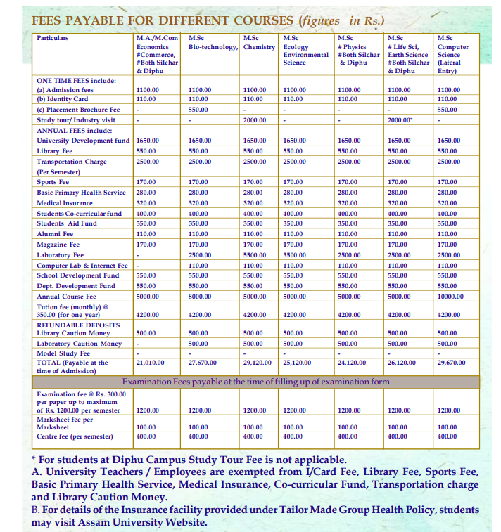 Earlier, M.Sc Life Science fees at Assam University Diphu was ₹ 31,765 (in 2018) for the entire course duration. This shows a fee increase of ₹ 9,205 over the year.