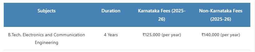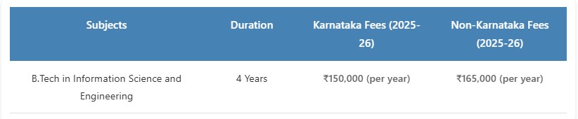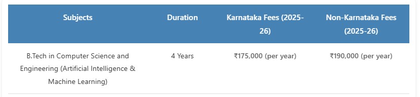 | Fees (2025 - 2026) | Year 1 (in INR) | Year 2 (in INR) | Year 3 (in INR) | Year 4 (in INR) |