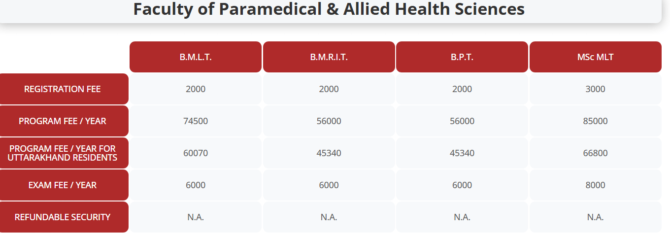 | Fees (2025 - 2026) | Year 1 (in INR) | Year 2 (in INR) | Year 3 (in INR) | Year 4 (in INR) |
