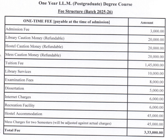 Earlier, L.L.M fees at MNLU Nagpur was ₹ 1.83 Lakhs (in 2024) for the entire course duration. This shows a fee increase of ₹ 20,000 over the year.